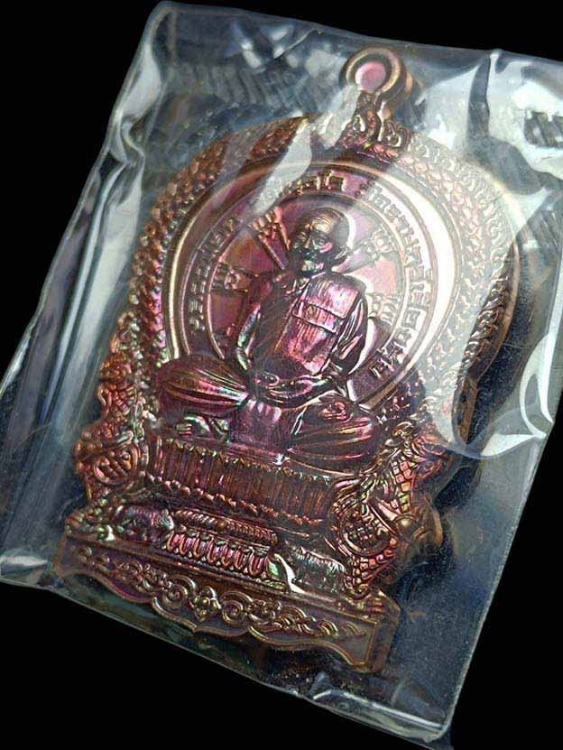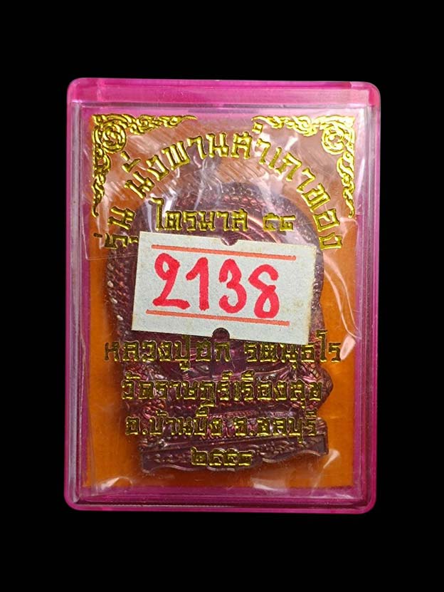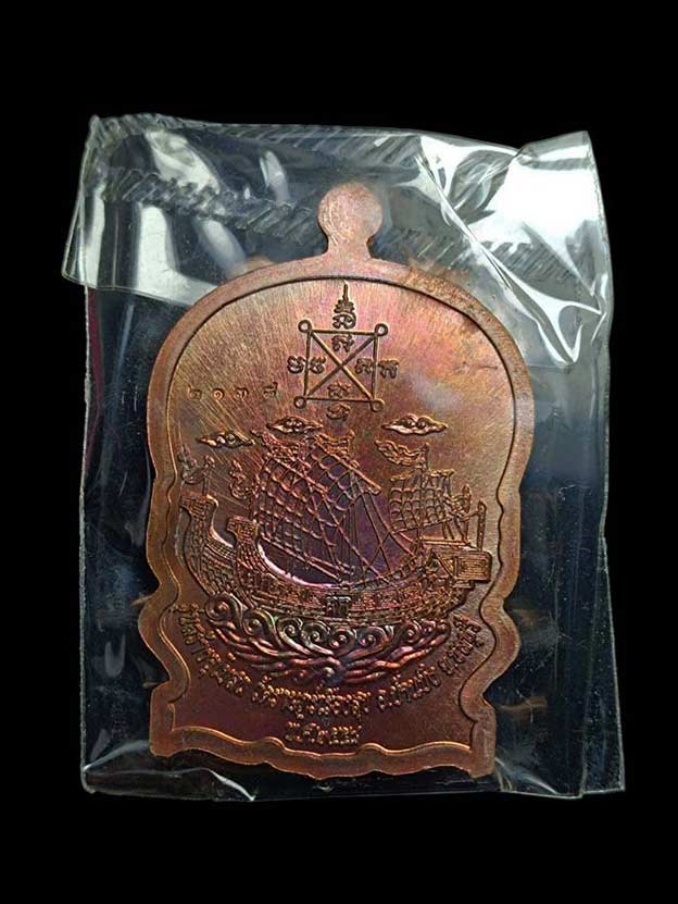 เหรียญนั่งพานสำเภาทอง หลวงปู่ฮก วัดราษฏร์เรืองสุข จ.ชลบุรี ปี 2558 (เนื้อทองแดงรมมันปู) ตอกโค้ต หมายเลข 2138 ซีลเดิม พร้อมกล่อง ผิวสวยๆ |