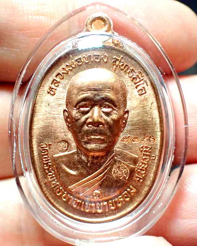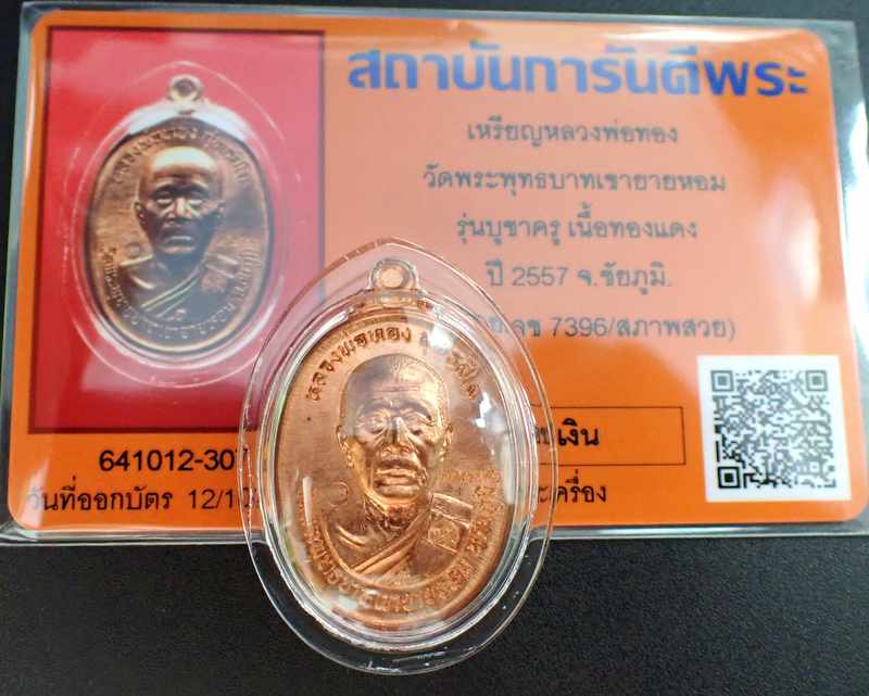 เหรียญหลวงพ่อทอง วัดบ้านไร่ รุ่นบูชาครู ปี 2557 เนื้อทองแดงผิวไฟ หมายเลข 7396 เลี่ยมกันน้ำอย่างดี พร้อมบัตรการันตีสภาพสวยครับ