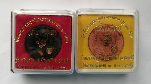 2องค์////หลวงพ่อเพี้ยน วัดเกริ่นกฐิน เหรียญรุ่นเพี้ยนมั่งมี ที่ระลึกพระพุทธรูปปางถวายเนตรสูง ๒๙ ศอก พิธีพุทธาภิเษก ๒ ธ.ต ๕๐ เนื้อผง ขนาดเส้นผ่าศูนย์กลาง 3 ซม. |