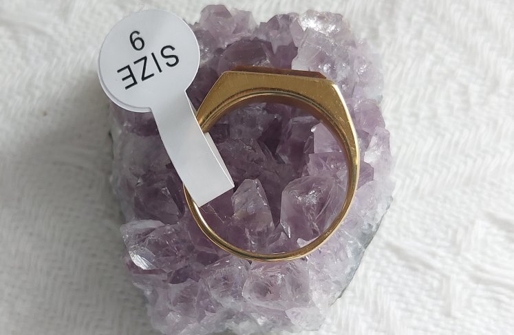 แหวนหัวไทเกอร์อายหรือหินตาเสือ ตัวเรือนแหวนเป็นสแตนเลสงานเลเซอร์ทองแข็งแรงทนทาน ขนาดแหวนเบอร์9 |
