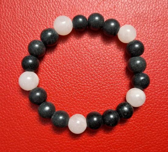ประคำข้อมือหยกพม่าสีขาว+หยกดำจีนเรียกว่า หยกเนไฟรต์ (Nephrite) ขนาด 10-12 มิล ร้อยด้วยเอ็นยืด ขนาดฟรีไซด์ (กท.38)