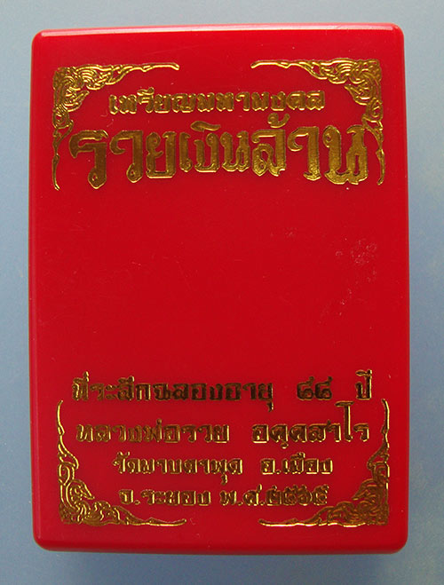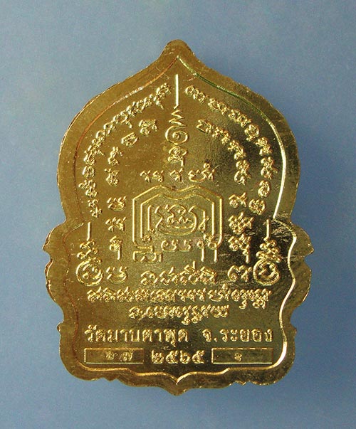 เหรียญนั่งพานมหามงคลรวยเงินล้าน เนื้อทองทิพย์ฝังพลอยมรกต หลวงพ่อรวย วัดมาบตาพุด จ.ระยองครับ |