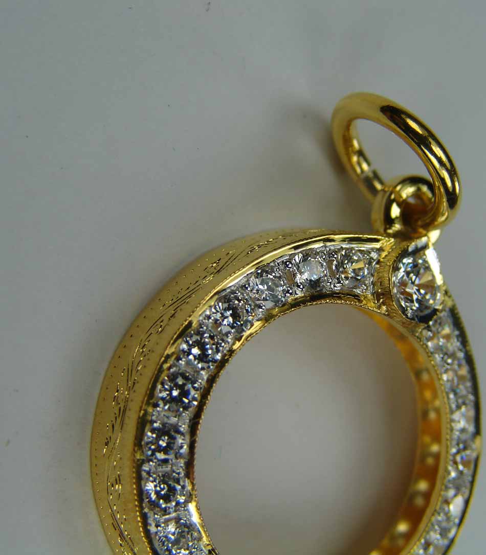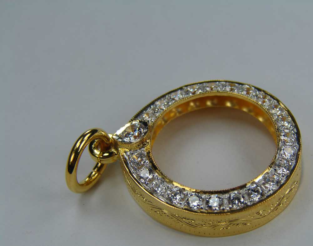 กรอบทองคำ ล้อมเพชร ทรงกลม ขนาด เส้นผ่าศูนย์ กลาง 1.6 ซม. ใส่ ลูกอม , เหรียญเม็ดกระดุม หลวงพ่อสาคร วัดหนองกรับ หรือไซด์ไกล้เคียง ( ฝังเพชร CZ 24 เม็ด ตรง Size ) ชุบหน้าขาว งานขึ้นมือ น้ำหนัก 3.39 กรัม