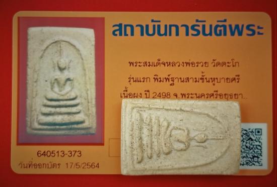 สมเด็จหลวงพ่อรวย วัดตะโก จ.อยุธยา พิมพิ์สามชั้นหูบายศรี เนื้อผง รุ่นแรก ปี 2498 เนื้อหาจัดๆพร้อมบัตรรับรองสถาบันฯ