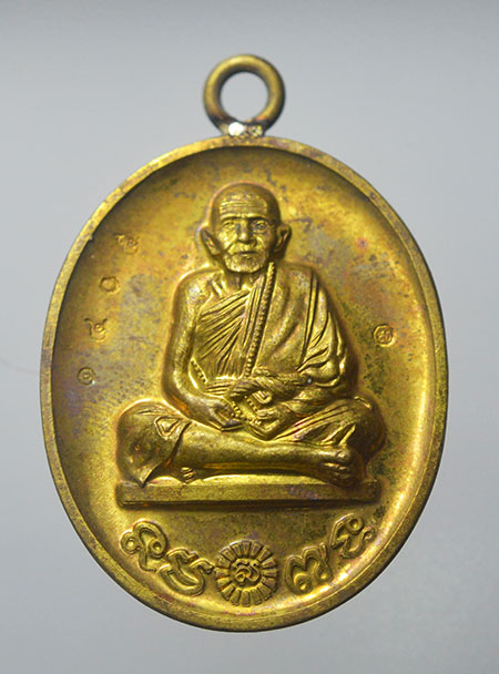 เหรียญหล่อ หลวงปู่แสน วัดบ้านหนองจิก ห่วงเชื่อ รุ่นแรก เนื้อทองระฆัง หลังยันต์ โค๊ด เลข 1405 เหรียญสูง 3.5 เซน |