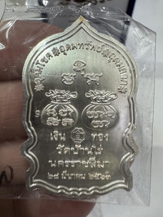 (เลขสวย 9)หลวงพ่อทอง วัดบ้านไร่ เหรียญนั่งพานเสาร์๕ พารวย ปี2563 เนื้อเงิน no.9 มีกล่อง