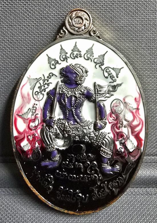 เนื้อเนื้อชนวนมวลสาร มหาปราบ ลงยาดำขาว ลายไฟ หนุมานกายม่วงเรืองแสง