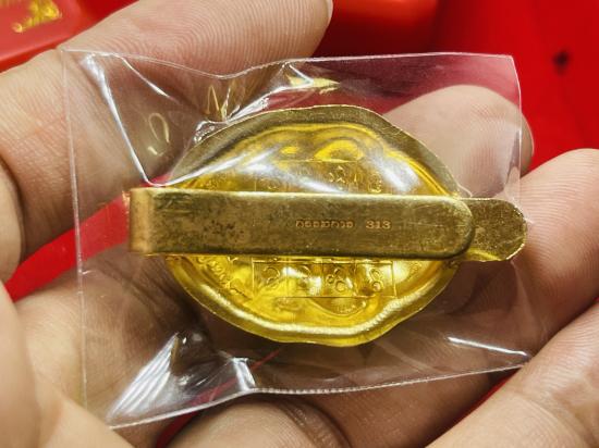 รายละเอียด เหรียญพระราหู วัดทุ่งม่านใต้ ครูบากฤษดา ปลุกเสก เหรียญแจกกรรมการ ทรงเข็มกลัด เนื้อทองทิพย์ เลข313
