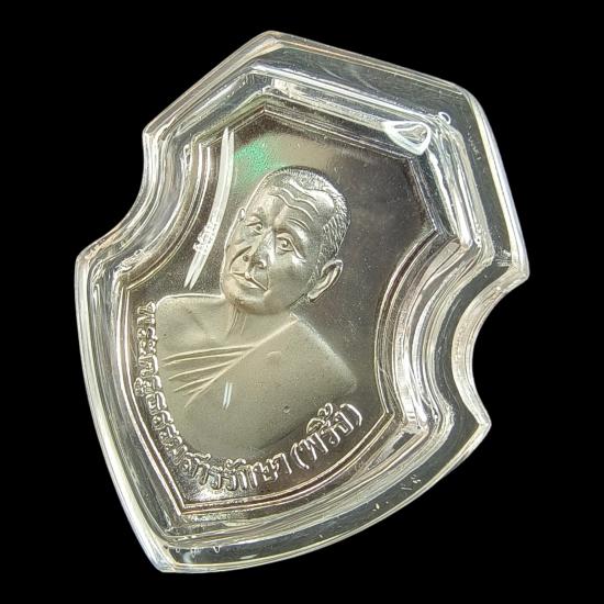 เหรียญหลวงพ่อพริ้ง (พระครูธรรมสารรักษา) วัดวรจันทร์ สุพรรณบุรี ๒๕๓๗ "รุ่นบูรณะเจดีย์วัดวรจันทร์" เนื้อเงินขัดเงาพ่นทราย เลี่ยมพลาสติกกันน้ำ |