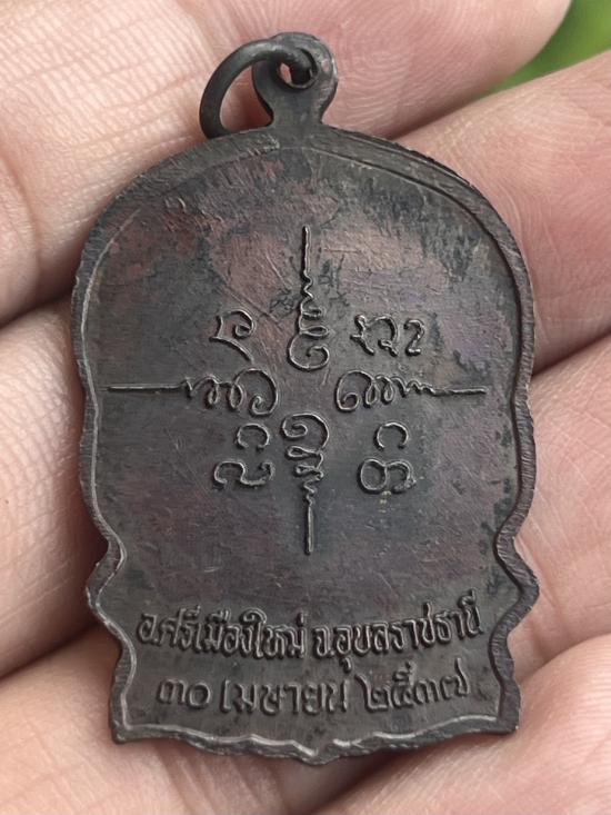 เหรียญนั่งพานรุ่นสำเร็จแก้ว เสาร์5 หลวงปู่พรหมมา เขมจาโร สำนักสงฆ์สวนหินบ้านดงนา อุบลราชธานี ปี2537 สวยนอนกล่อง |