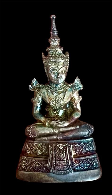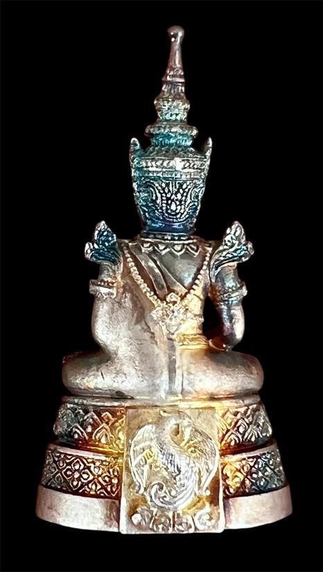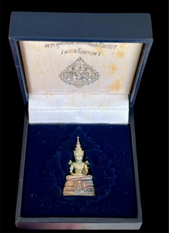 พระแก้วมรกต กรมสรรพสามิต จัดสร้างโดยวัดพระศรีรัตนศาสดาราม เนื้อเงินขัดเงา มีคราบปรอทเหลืองเหลือบรุ้ง ปี 2539 สภาพสวยพร้อมกล่องเดิม |