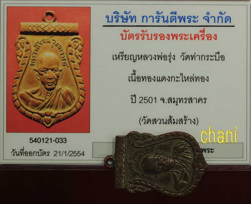 เหรียญ หลวงพ่อรุ่ง วัดท่ากระบือ เนื้ิอทองแดงกะไหล่ทอง ปี2501 จ.สมุทรสาคร (วัดสวนส้มสร้าง) สภาพสวยเดิมๆผิวยังมีเห็นกะไหล่ทองสวยๆ พร้อมบัตรรับรองพระแท้จากจีพระอุ่นใจได้ ไม่ต้องลุ้น