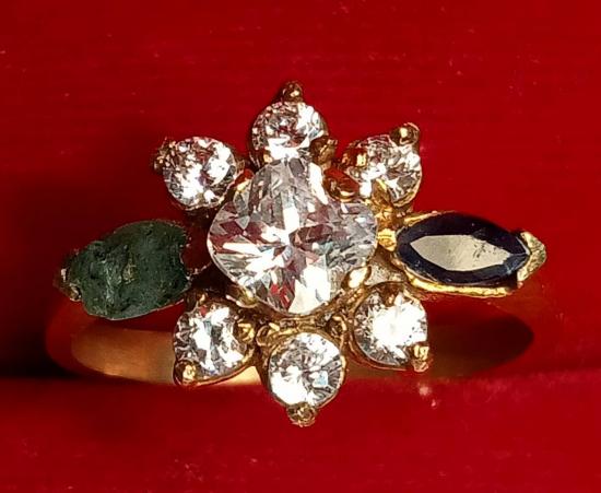 แหวนทองเหลือง ไพลิน มรกต ทรงดอกไม้ แถม แหวนงานจิวเวอร์รี่อีก 1 วง (รหัส 30076560.3) |