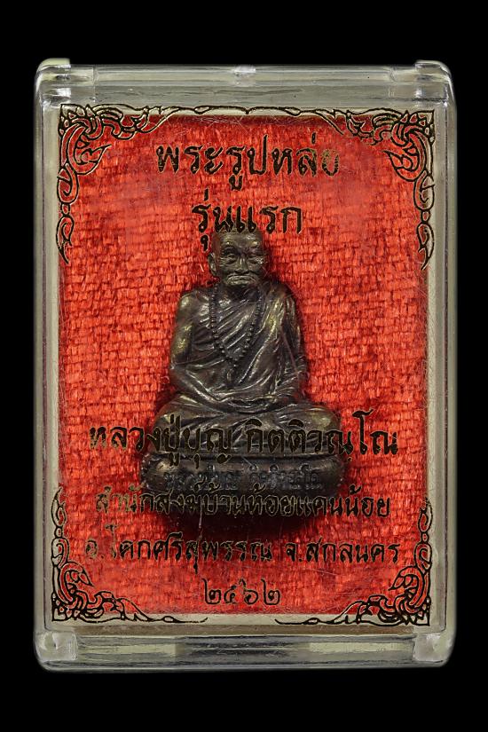 รูปหล่อรุ่นแรก หลวงปู่บุญ กิตติวัณโณ อายุ 103 ปี 75 พรรษา สำนักสงฆ์ห้วยแคนน้อย จังหวัดสกลนคร ปี 2562 ก้นโค๊ดตอกเลข ๓๕๒ พร้อมกล่องเดิม(( แดงวัดใจ 120 ))