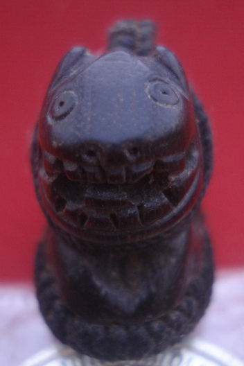 .เสือหลวงพ่อสาคร ยุคแรกแกะมือ เนื้อไม้พญางิ้วดำ ตอกโค๊ตด้านข้างสองตัว ก้นอุดด้วยผงพราย |