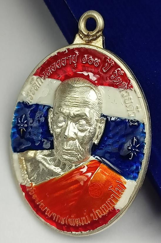 เหรียญห่วงเชื่อมหลังเต่า รุ่น"อมตะพัฒน์ปาฏิหาริย์" หลวงพ่อพัฒน์ วัดห้วยด้วน เนื้อเงินลงยาลายธงชาติ เบอร์ 105 พร้อมกล่องเดิมครับ (น้ำหนักเหรียญ 20.52กรัม สร้างเพียง111องค์)