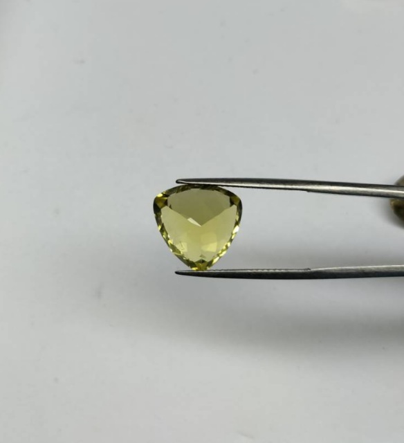 พลอยเลมอนควอตซ์ ทรงสามเหลี่ยม น้ำหนัก 8.80 กะรัต ไม่ผ่านการเผา |