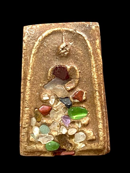 ***พิมพ์สมเด็จทรงนิยม เนื้อผงผสมมวลสารเก่า ด้านหน้าฝังพลอยหลายสีแน่นเต็มองค์ ทั้งเขียว แดง ม่วง ขาว เพิ่มความงดงามและมงคล ด้านหลังเรียบมีคราบเก่าแห้งธรรมชาติ