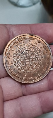 เหรียญบาตรน้ำมนต์ หลวงพ่อทรง วัดศาลาดิน จ. อ่างทอง เนื้อทองแดงขนาด 4 ซม. สร้างปี 2549 |
