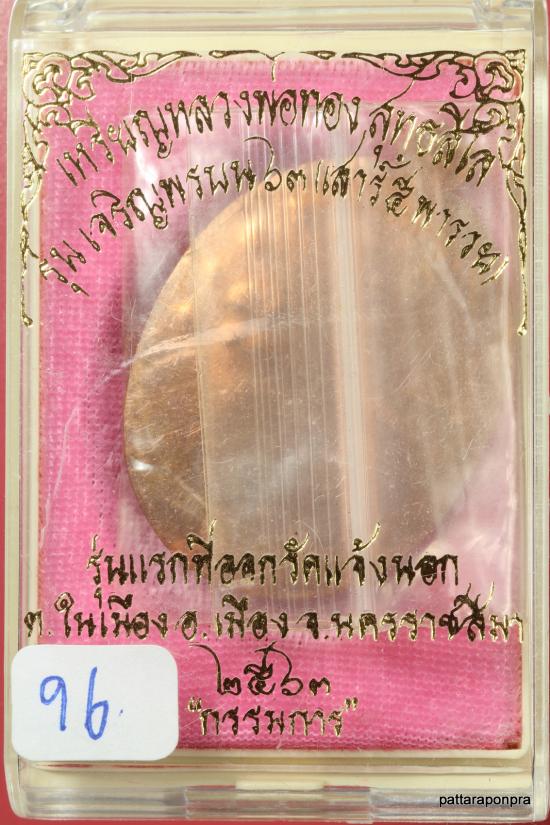 เหรียญหลวงพ่อทอง รุ่นเจริญพรบน๖๓ ปี 2563 เนื้อทองแดงไม่ตักปีกหลังเรียบ หมายเลข 96 |