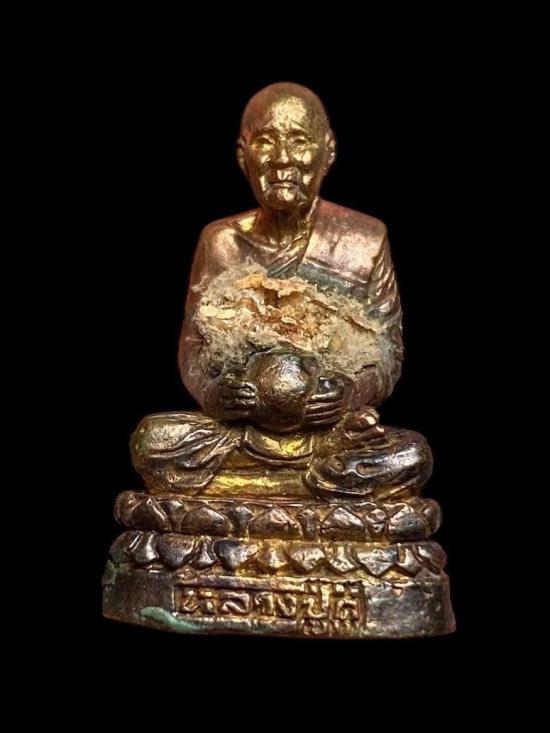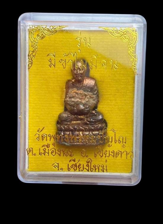 รูปหล่อหลวงปู่ดู่นั่งอุ้มบาตรรุ่น (มีข้าไม่มีจน) หลวงตาม้าวัดถ้ำเมืองนะ ต.เมืองนะ อ.เชียงดาว จ.เชียงใหม่ หลวงปู่ดู่นั่งอุ้มบาตร (ลอยองค์) สูง 2 ซม.