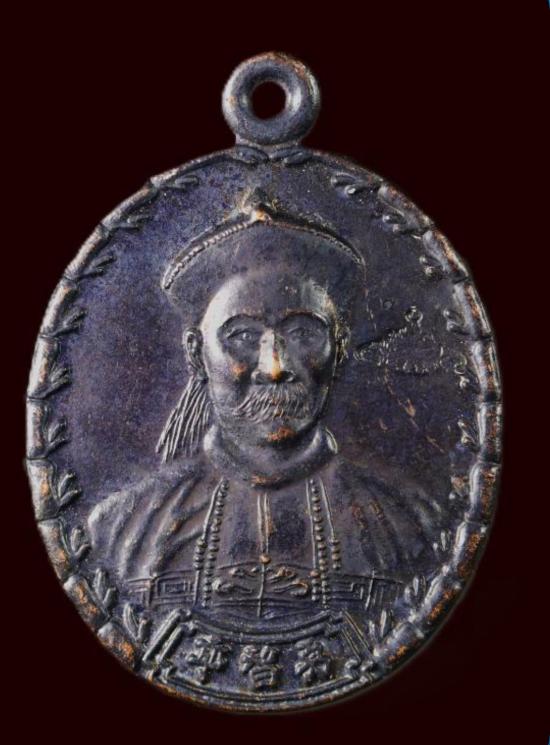 เหรียญยี่กอฮง เทพเจ้าแห่งการพนัน รุ่นบ่วงสื่อเฮง เฮงหมื่นเรื่อง เนื้อทองแดง ปี2541 |
