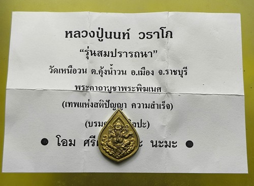 พระพิฆเนศ เนื้อฝาบาตร รุ่นสมปราถนา หลวงปู่นนท์ วราโภ วัดเหนือวน จ.ราชบุรี สวย มาเป็นชุด พร้อมใบคาถา วัดใจ ไม่มีกล่องนะครับ |