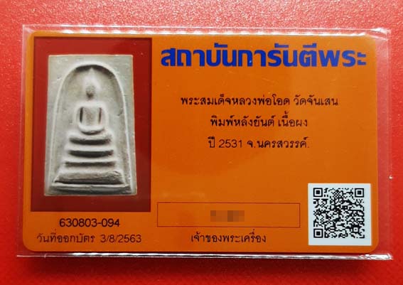 พระสมเด็จหลวงพ่อโอด ปี2531 วัดจันเสน จ.นครสวรรค์ พร้อมบัตรรับรองครับ |