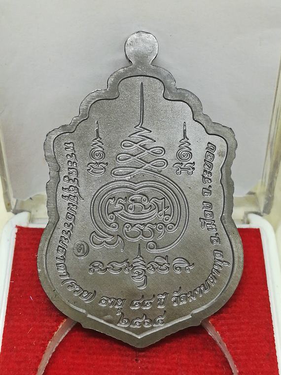 เหรียญเสมา รวยมหาสมปรารถนา หลวงพ่อรวย อคฺคสาโร วัดมาบตาพุด อ.เมือง จ.ระยอง เนื้อตะกั่วหน้ากากเงินลงยา หมายเลข 79 |