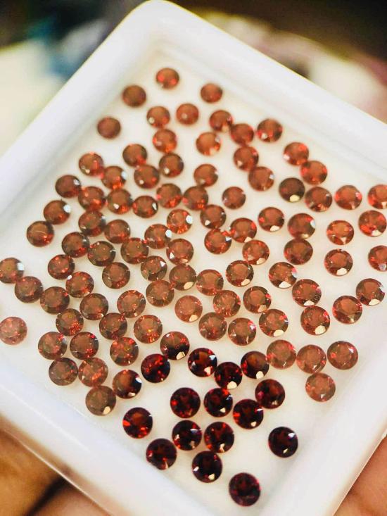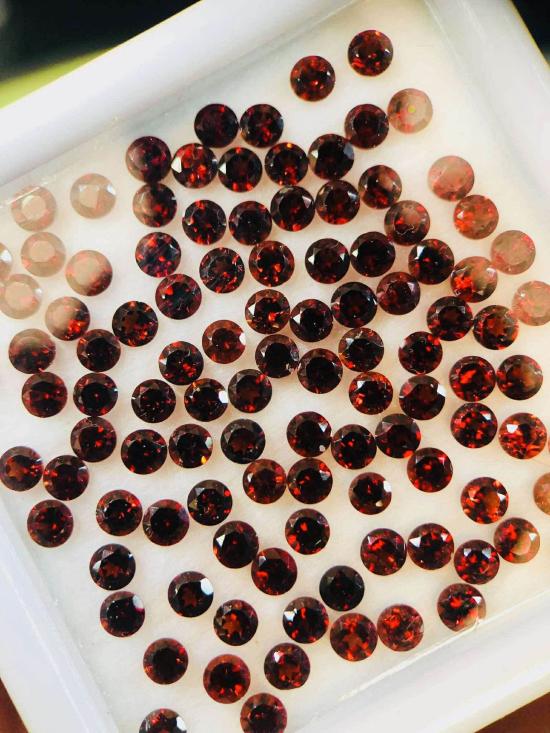 โกเมนแดง (สยาม บ่อไร่) พลอยเก่าเก็บ ขนาดประมาณ 2.5 มิล 110 เม็ด น้ำหนักรวม 10.05 กะรัต |
