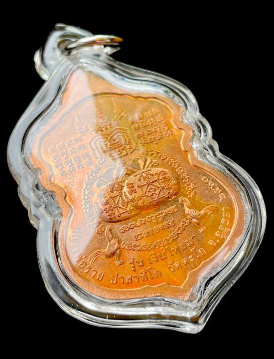 วัดใจ เหรียญ เงินไหลมา หลวงพ่อรวย วัดตะโก อยุธยา เนื้อทองแดง ปี 2559 เลขสวย 892 เลี่ยม สวยงาม |