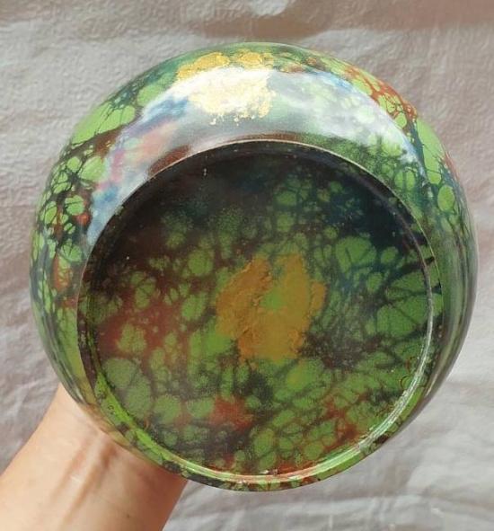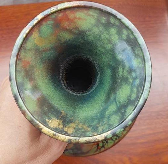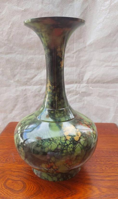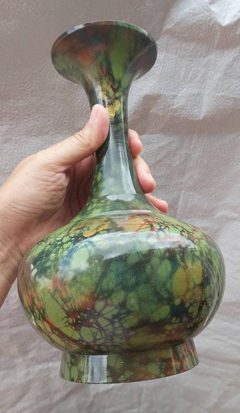 ***วัดใจ***แจกันเก่าเก็บเนื้อสำริดเคลือบผิวสีทอง-เขียว งานของญี่ปุ่น สูง 12 นิ้ว ใบนี้หนัก 1 โลนิดๆ |
