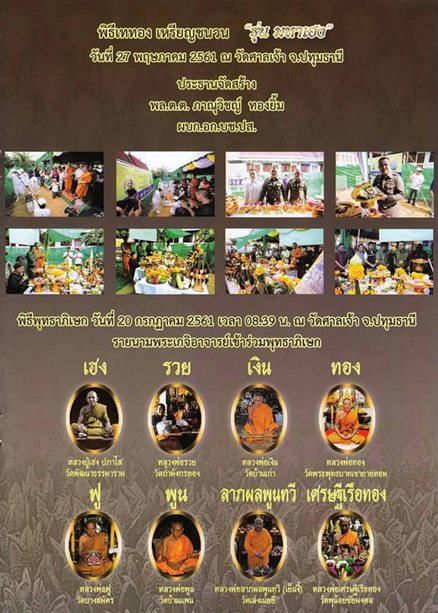 พิธีพุทธาภิเษกวันที่ 20 กรกฎาคม 2561 ณ วัดศาลเจ้า จังหวัดปทุมธานี รายนาม
