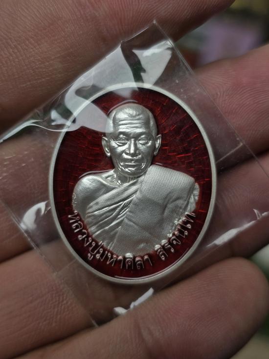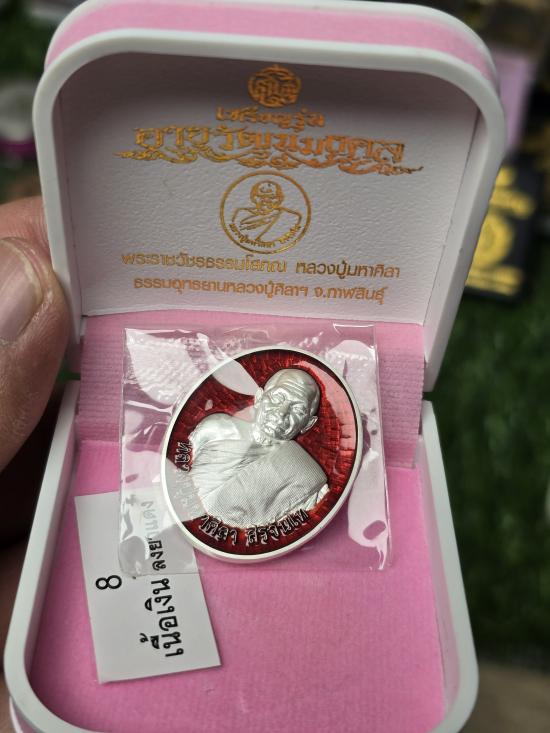 วัดใจเคาะเดียวแดง เหรียญรุ่นอายุวัฒนมงคล เนื้อเงินลงยาแดง หลวงปู่มหาศิลา สิริจันโท ธรรมอุทธยานหลวงปู่ศิลา จ.กาฬสินธุ์ |