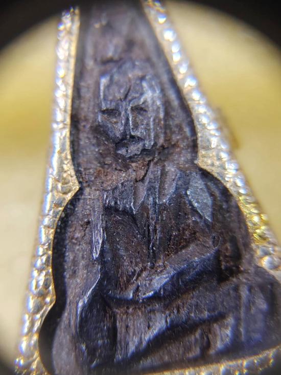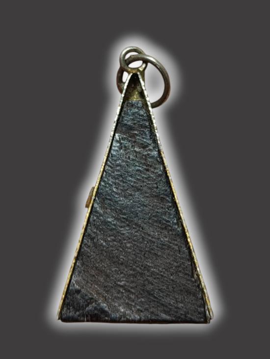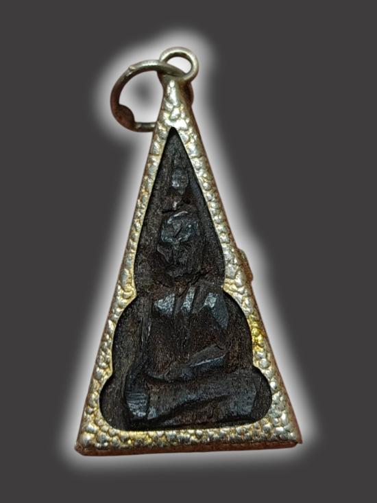 ชื่อพระเครื่อง A2089.พระพุทธไม้แกะพิมพ์สามเหลี่ยม ไม่ทราบที่ เลี่ยมเดิม เคาะเดียวเเดง