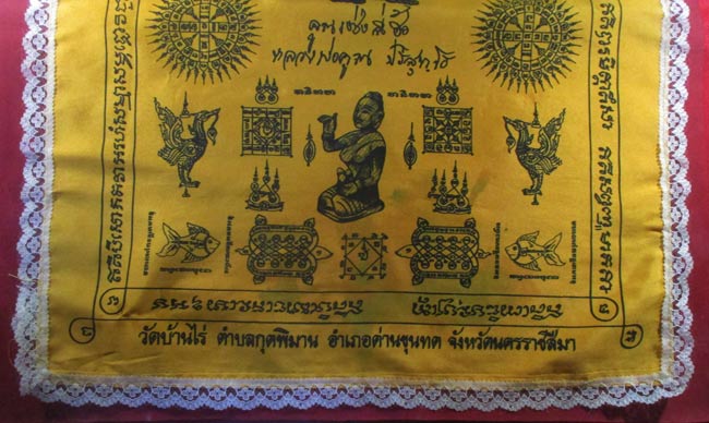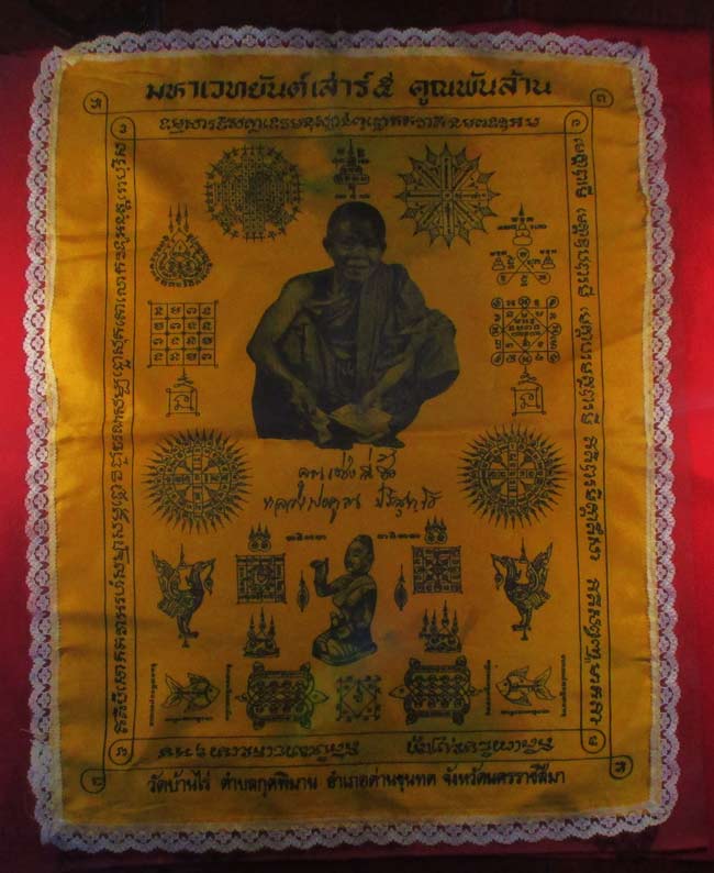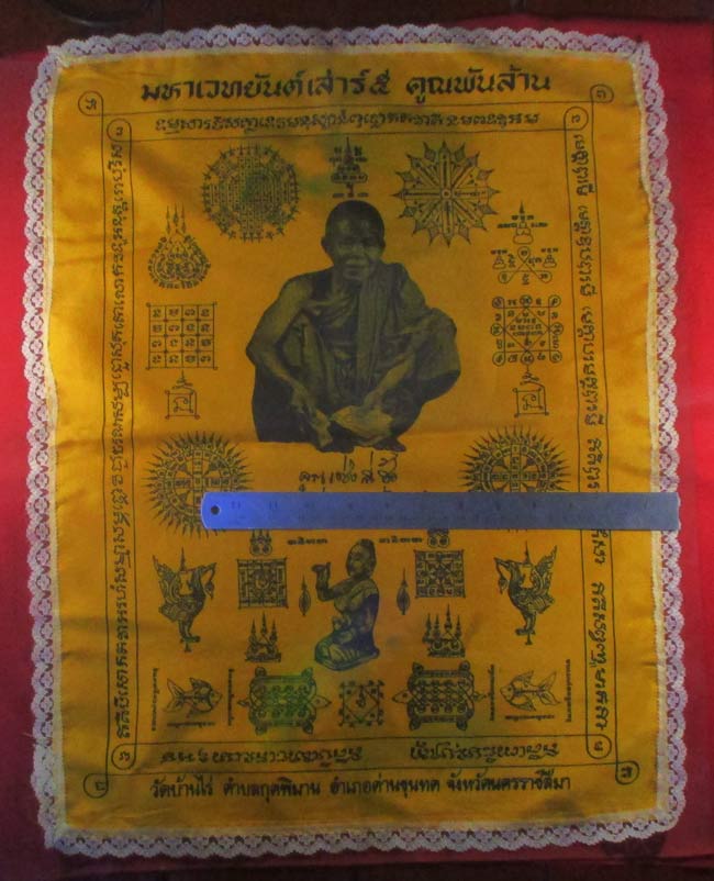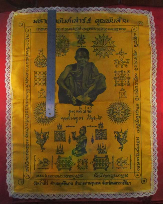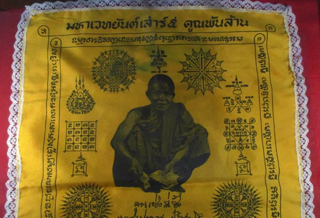 ผ้ายันต์ มหาเวทยันต์เสาร์ ๕ คูณพันล้าน วัดบ้านไร่ ต.กุดพิมาน อ.ด่านขุนทด จ.นครราชสีมา ครับ (พระบ้าน ครับ)