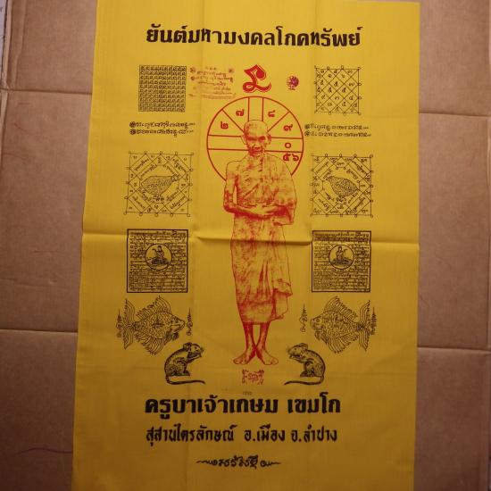 ผืนใหญ่......(ขนาด 22 X 33 นิ้ว) ผ้ายันต์มหามงคลโภคทรัพย์ หลวงพ่อเกษม เลข 1232 ..68.9.26 |