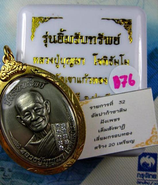 เหรียญหลวงปู่บุญมา จ.ปราจีนบุรี รุ่น ยิ้มรับทรัพย์ เนื้ออัลปาก้าซาติน ฝังเพชร CZ เต็มสังฆฎิ พร้อมเลี่ยม พร้อมใช้งาน หมายเลขโซนวันเกิด หมายเลข ๗ สร้าง 20 เหรียญ (---B76--- |