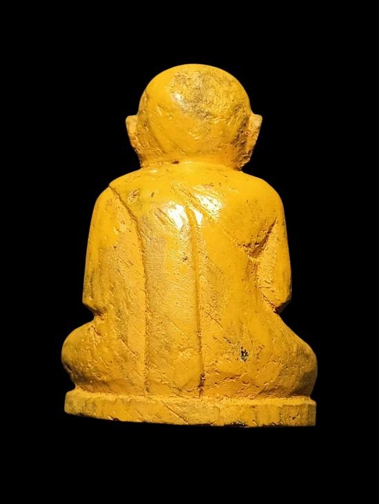 พระรูปเหมือน ไม้โพธิ์แกะ ทาสีหรดาล ทั่วองค์ ศิลปะสวยงาม เข้มขลัง เก่าไม่ทราบที่ ครับ |