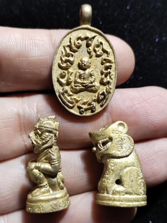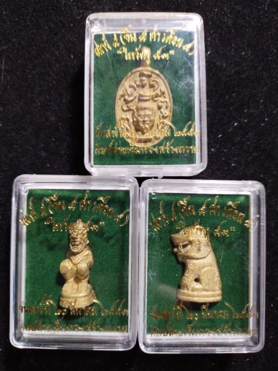 ชื่อพระเครื่อง ชุดหล่อไตรภาคีปราบสมิง พระอาจารย์ป้อม วัดหนองม่วง จ.ราชบุรี เนื้อทองระฆัง ยกชุด 3 องค์.....วัดใจเคาะเดียว