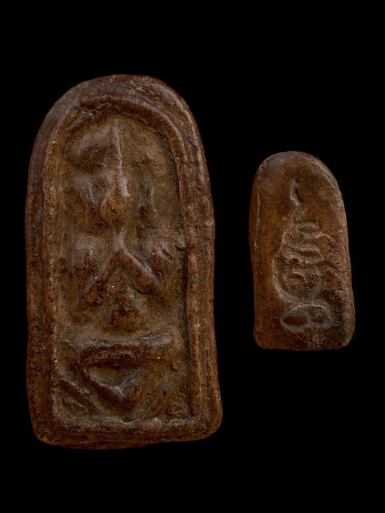 Q273. พระเนื้อดินน้ำตาลเข้ม มีจารหลัง ผิวแห้งจัด เก่าถึงยุค (เคาะเดียวแดง) |