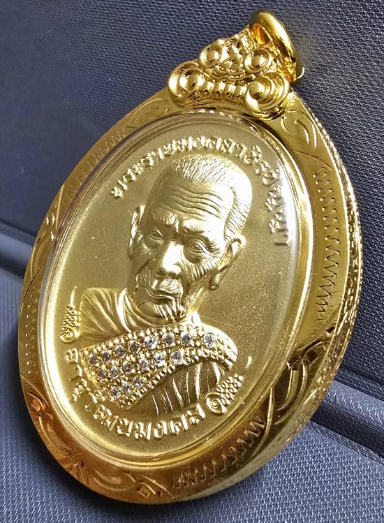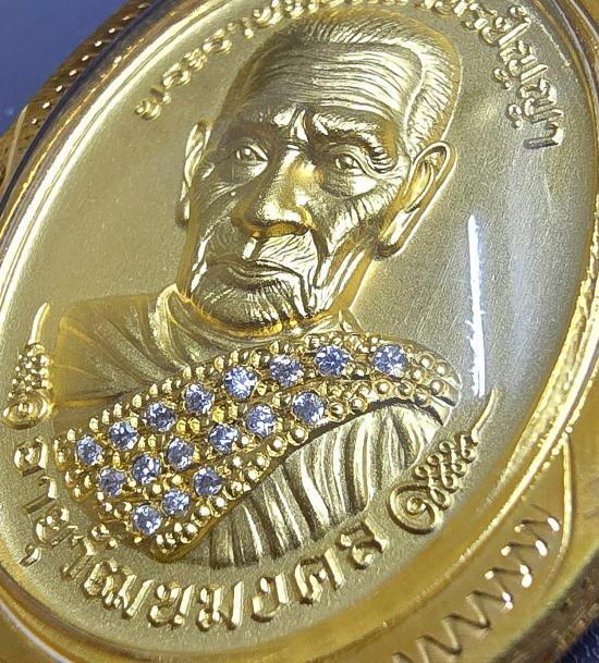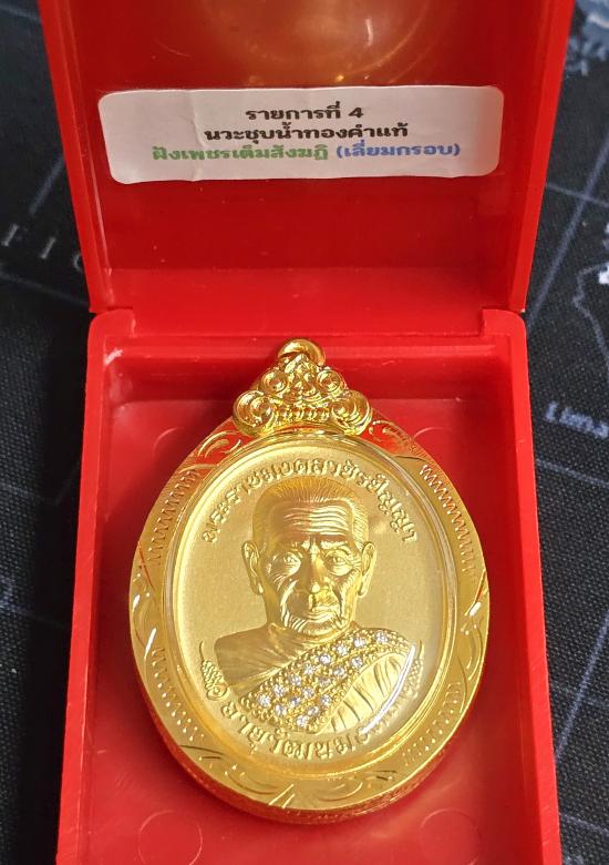 เนื้อชุบน้ำทองคำแท้ ฝังเพชรเต็มสังฆาฏิ เลี่ยมกรอบชุบทอง