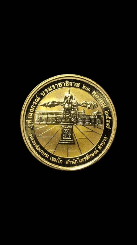 เหรียญรัชกาลที่5 กะไหล่ทอง หลวงพ่อเกษม ปี2537 บล็อกนอก