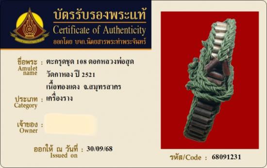 ชื่อพระเครื่อง <<วัดใจ20บาท..ตะกรุดชุด108ดอกหลวงพ่อสุด วัดกาหลง จ.สมุทรสาคร เนื้อสามกษัตริย์ ถักเชือก สร้างปี 2521 (บัตรรับรองนิตยสารพระท่าพระจันทร์) ตัวจริงเสียงจริง สวยเดิมทุกประการ น่าบูชามากๆครับ>>