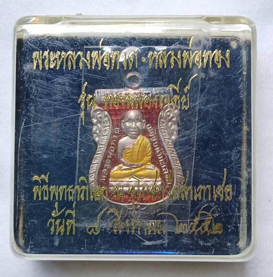 เหรียญหลวงปู่ทวด พ่อท่านทอง วัดสำเภาเชย จ.ปัตตานี ปี 2552 รุ่นทองฉลองเจดีย์ เนื้อเงินลงยาสีแดง ซีลเดิมพร้อมกล่อง |