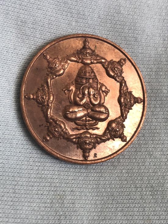 มงคลจักรวาลขุนพันธ์พุทธาคมเขาอ้อ เหรียญ ปิดตาพังพกาฬ รุ่นแรก ปี 2544 เนื้อทองแดง ขนาด 3.2 ซม. |