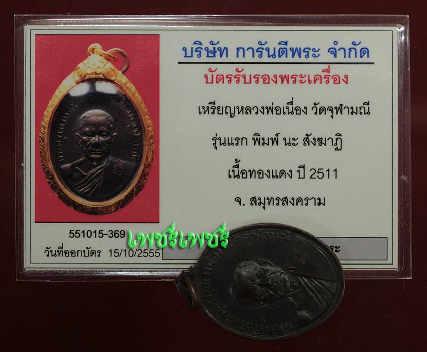 เหรียญ หลวงพ่อเนื่อง วัดจุฬามณี รุ่นแรก พิมพ์ นะ สังฆาฏิ เนื้อทองแดง ปี2511 จ.สมุทรสงครามสภาพสวยเดิมๆ พร้อมบัตรรับรองพระแท้จากการันตีพระสบายใจได้พระแท้แน่นอน ค่ะ |
