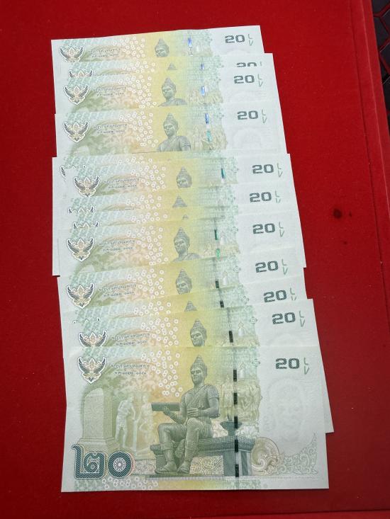 ธนบัตร 20 รัชกาลที่ 9 เลขเรียง สภาพ UNC (13 ใบ เคาะเดียว 290) |