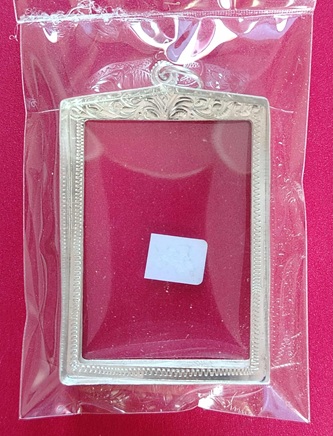 กรอบเงินแท้ สำหรับรูปถ่ายหลวงพ่อกวย หรือพระทรงสมเด็จท่มีขนาดใกล้เคียง งานแกะมือ