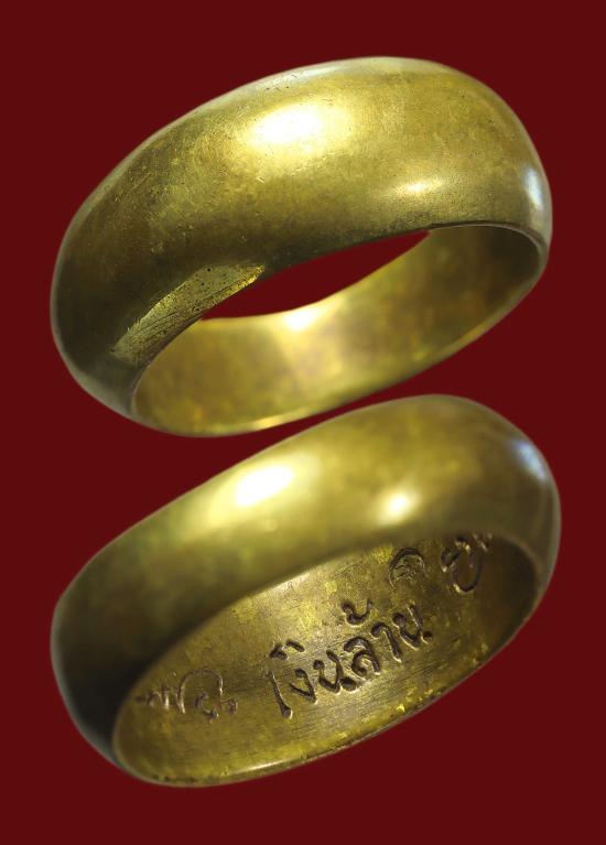 แหวนไตรมาส พุทธคุณเงินล้าน เนื้อทองเหลือง หลวงพ่อเพี้ยน วัดเกรินกฐิน ปี2552 สร้าง599วง กล่องเดิม ตอกโค๊ต แดง120